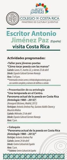 Presentación de Una Temporada en el Centro / Panorama Actual de la Poesía en Costa Rica (Antología 1980 – 2013) de Antonio Jiménez Paz (Amargord Ediciones, España, 2013).