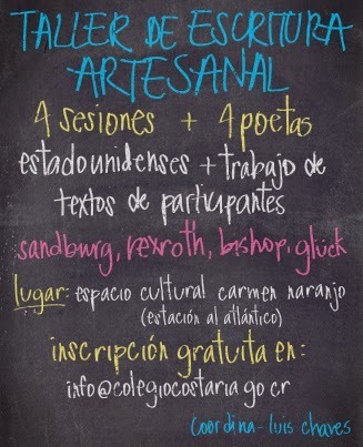 Regresa el Taller de Escritura Artesanal con un programa de seis sesiones. Casi dos horas dedicadas a la halterofilia literaria. Cada sesión se divide en a) lectura y discusión de un poeta estadounidense y b) trabajo de taller con textos de los participantes.