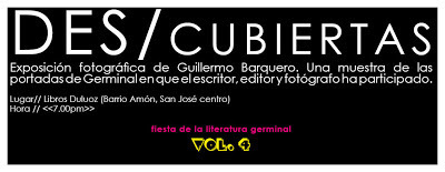 Editorial Germinal en galería des pacio. Acaban de subirla al ciberespacio. Esa vez estaban: Rocío Cerón (México), Sauma, Trejos, Zingone y este servidor.