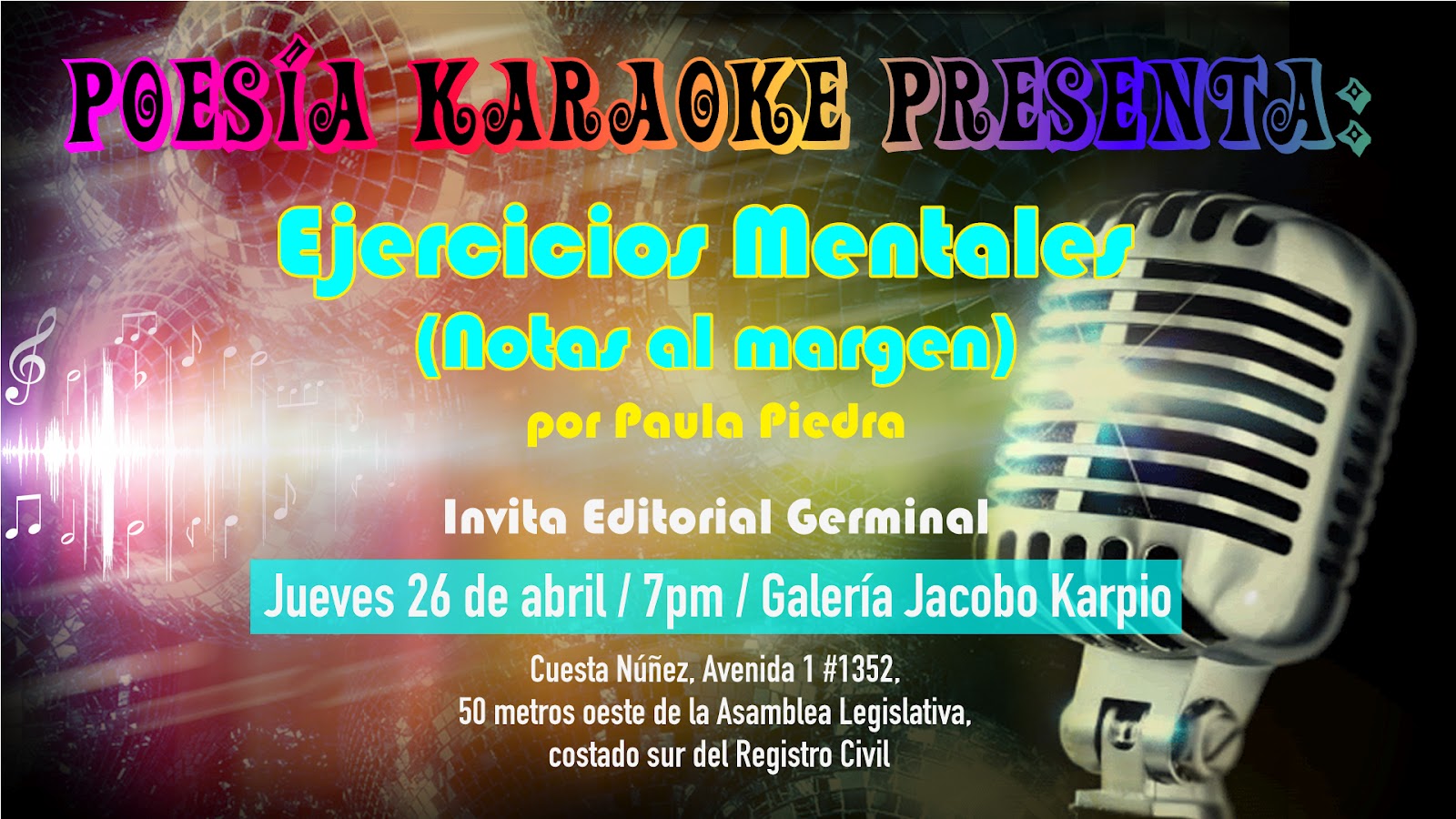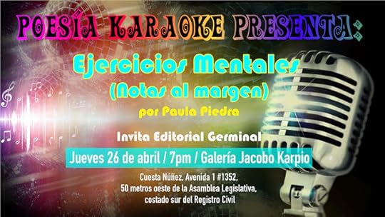 Y presentación en formato karaoke del libro Ejercicios Mentales / Notas al margen de Paula piedra en la Galería Jacobo Karpio, a las 7 p.m.