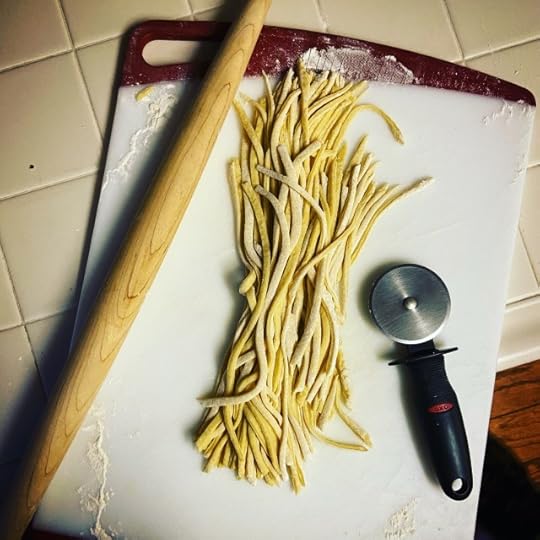 Last night, I made pasta from scratch for the first time. (It went well until I missed the part in the recipe that said to let the dough rest.)