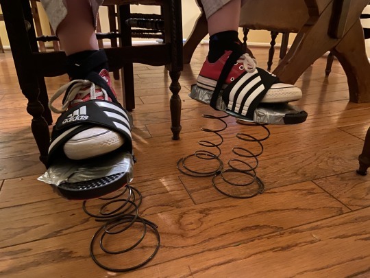 They make the wearer so unstable, you can’t even stand in these things. He and I both tried. The springs are just too… well, springy.