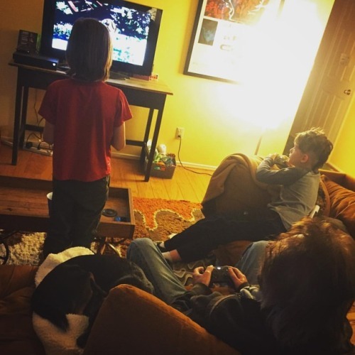 The boys are showing Grandpa Larry how to play Goat Simulator. This is not how any of us thought this visit would go.