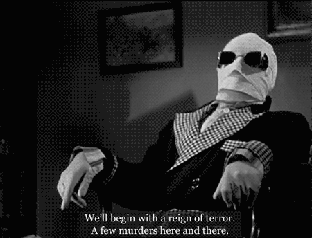 The Legend of Sleepy Hollow is fairly innocent—it is, after all, simply the retelling of an epic prank. There’s no blood, no murder, just a few creepy moments. The Invisible Man, however, does feature some violence. Fights and injuries are described in detail. Plus, Griffin (aka the titular Invisible Man) does actually kill someone. But, since they’ve seen British enlisted men fall at the hands of cursed pirates, I figured they could handle it. And they did. [The only downside: There’s some… um… bigoted language in each story that I had to edit on the fly as I read.]
