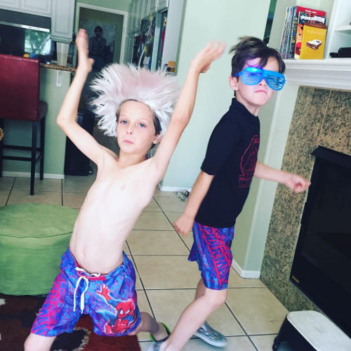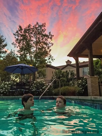 The boys were cooped up all day at summer camp yesterday because of the heat. (When it’s 100 degrees or more, the counselors keep them inside.) Needless to say, cabin fever had set in by the time I picked them up. So, an evening swim session was in order, even if it meant they were out past their bedtime.
