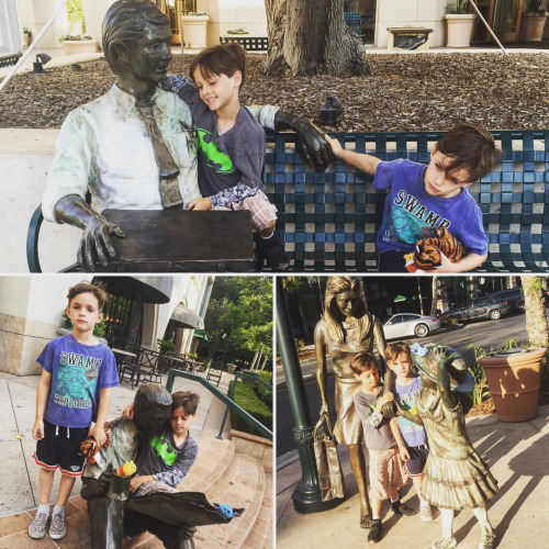 In our local shopping area, there are all of these statues of people doing normal everyday stuff. As we walked to dinner yesterday, the boys wanted pics with each of them. Not creepy or weird at all.