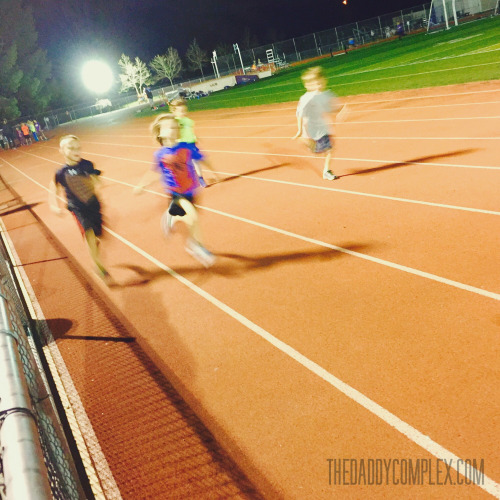 We’re at track practice and Wyatt (in the lead in this pic) just came up to me and told me he needs sunlight to regain his strength.