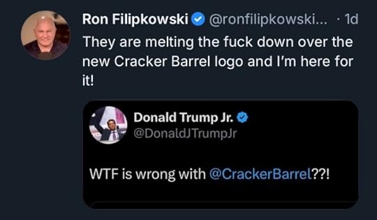 MAGA is upset about the updated Cracker Barrel logo because crackers hate to evolve.
