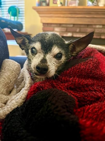 A photo of our aging chihuahua, who fell in the pool. Again.