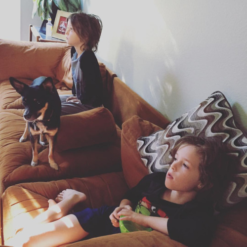 We decided to have a lazy Sunday morning, so the boys are watching Fantasia for the first time while Lulu cleans up their crumbs.