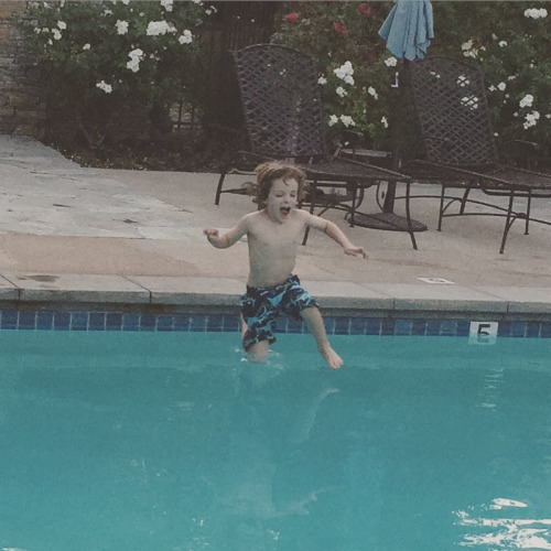 We went for an evening swim. Me and Wyatt like to just jump in, while Boone gets in slowly. This time, however, he tried our method.