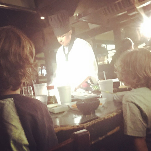 We took the boys to one of those places where they cook food, like, right in front of you. It was an awesome night… until Wyatt had a meltdown because I wouldn’t build a tent in their room before bed.