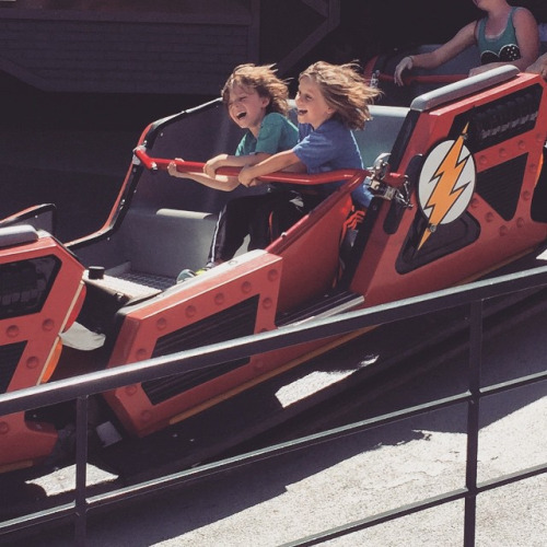 After kicking butt at the track meet yesterday, a turn on The Flash ride today seems appropriate.