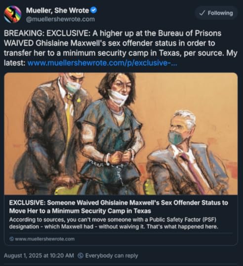 Well, MAGA. The Trump admin just gave Ghislaine Maxwell a pass.