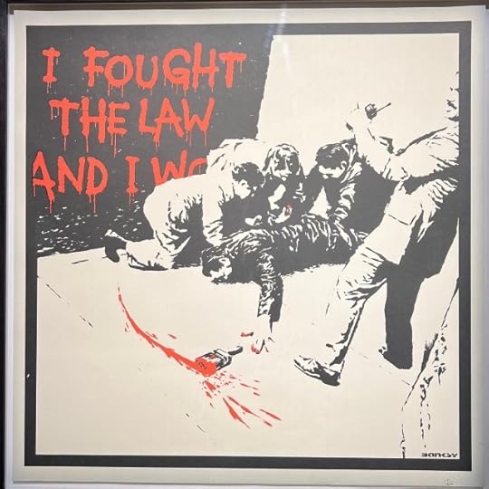 We showed the boys the Exit Through The Gift Shop documentary last night, then took them to the Banksy Expo in Culver City today to see how art (and dissent) can be a tool for change.