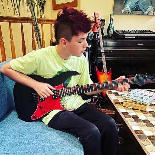 And since he outgrew his ¾ one years ago, Boone’s been playing my old guitar, so for Xmas he got one of his own. Perfect for SHREDDING LICKS!