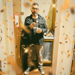 Kicking off New Year’s Eve as you do, drinking in a hotel room with digitally added confetti.