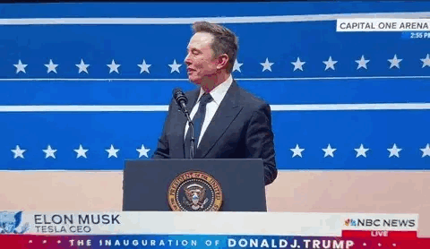 what do you mean elon musk did a nazi salute on live tv at the united states presidential inauguration twice and is now erasing the evidence off the internet by replacing the footage with the crowd cheering instead?