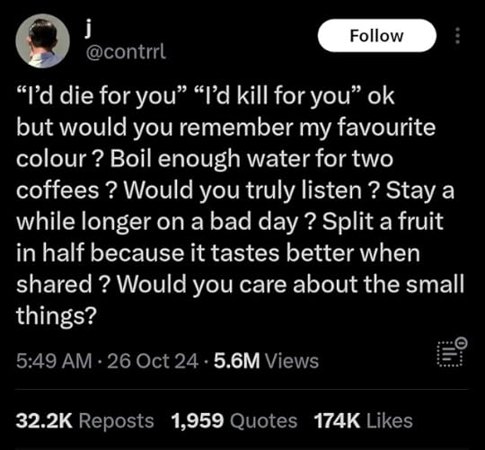 I promised things like I’d always get her a blanket when she’s cold and the dog is in her lap, I’d always get her a tissue if she has the sniffles, I’d always laugh at her jokes (as long as they’re good), etc. Y'know, shit that actually matters.