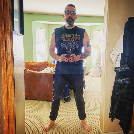This photo is from a couple of days ago (please forgive the dirty mirror). Not a shockingly drastic change, but enough of one for me. I’m slimmer and more fit than I’ve been in decades and it wasn’t because I said, “I need to lose 20 pounds.” It’s because I said, “I’m going to exercise for me.”