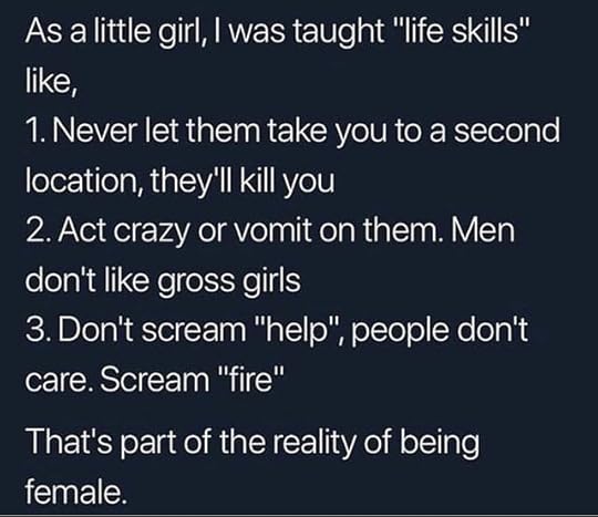 DO NOT SCROLL PASTBeing female fucking sucks but yes this shit is important for everyone