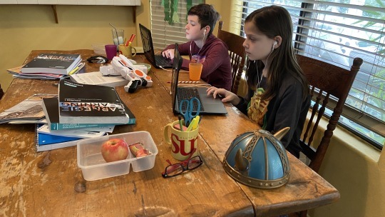 My kids brought a viking helmet and laser guns to their virtual school today. Not for an assignment,...