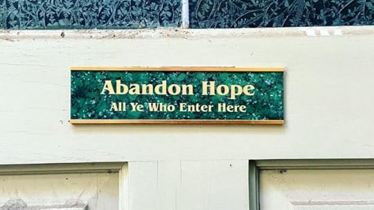 My writing office has a little sign holder (slightly askew), so I had the most appropriate placard...