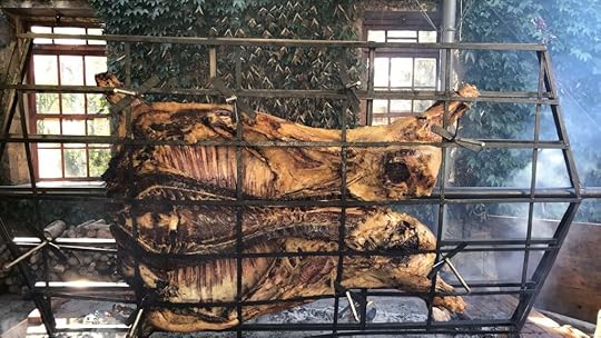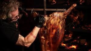 Tasmania offers stupendous produce and we are very fortunate to be able to source the best of the best for the feast nights. Megan Brown and I are joining forces to design and execute a meal cooked on the whopping great rotating barbeque. Last year it roasted a whole beast as seen below, this year we are adapting it to cook local line caught fish and vegetables direct from the soils in the Derwent Valley, grown for us by the man seen at left below, Tony Shearer. His farm is surrounded by the driest country, his tender care ensures his produce meets the highest standards. A whole lot of labour, water and love go in to producing such results for which we give thanks.