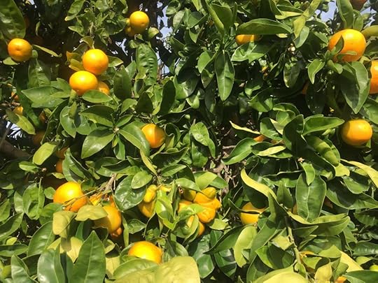 It is citrus season everywhere in the South West, this tree was groaning with soon to be sweet fruit. When you get your hands on such fine specimens I recommend keeping the skins and drying them for later use in marinades, cakes and slow roasted duck or pork dishes.