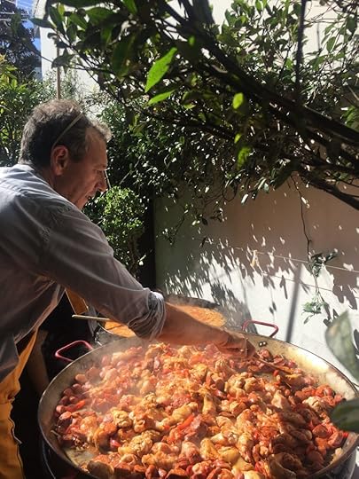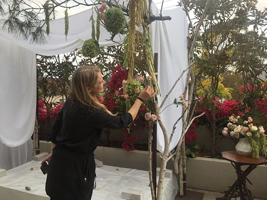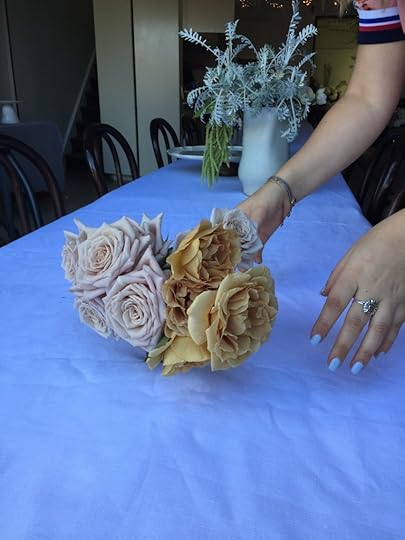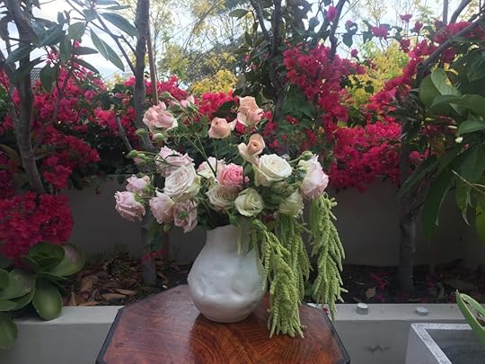 Yolande and Saskia Havekes are old friends, Yolande designed Saskia’s first book, at the same time that she was designing my first book Nourish. Saskia is the worlds most exquisite florist ‘Grandiflora’ I have made it a link, because if you don’t yet know of their work I am certain you will want to. If you have a need for spectacular head straight there. Saskia spent the wedding day transforming the space with divine blooms and then she tasked India with their care for the two days, which is why you see her above with Yolande’s daughter Margot’s bouquet, Margot was busy doing Yolande’s make up, very beautifully. A wedding inevitably reminds one of the joy that love brings and the focus of course is on the love between those who are marrying but what was clear here, was that love was present and expressed by all involved, for days. It was an uplifting, stupendous event, an evening wedding with 100 guests in a not so large terraced house in Bronte. We danced into the small hours and then, somehow, we cleaned up and transformed the space to provide lunch. Paella for 58, cooked by chef Martin! – with a little help from his friend (me) and newly acquired brother in law Evan and then CAKE by the fabulous Nadine Ingram’s team at Flour and Stone, also THE place to go if real, irresistible cake is your requirement. All the while, as the entire contents of the ground floor were schlepped in and out of vans and the garage was filled fit to bursting there was laughter, love and continuous support. A tribute to community, caring and what friendship can engender. One should of course not wish it, but could we do that again, it took a lot to make happen but it went so quickly? Many blooms came home with me, as the couple went honeymooning, I was not sad but days later I found it hard to let go of the beauteous roses.