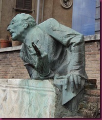 This striking sculpture which I later found out was of the poet Carlo Alberto Salustri who wrote under the pen-name Trilussa.