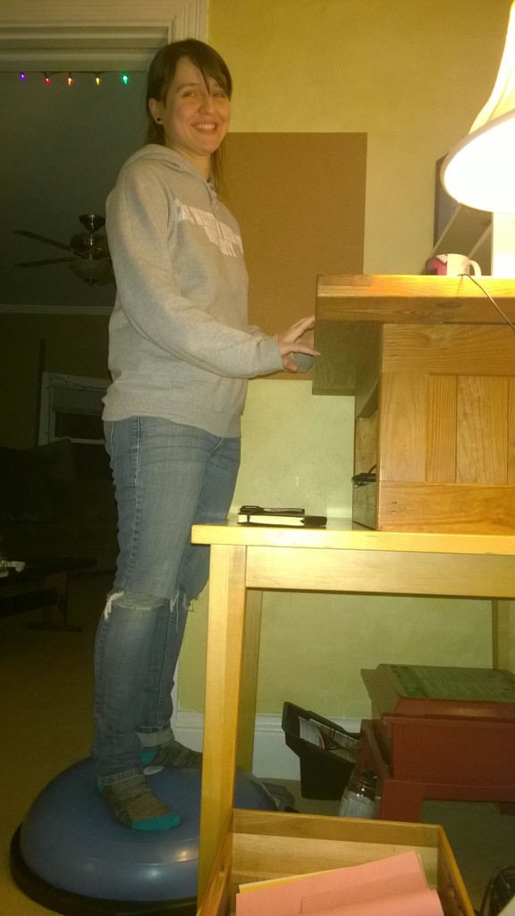It’s supposedly good for my joints and burns more calories and stuff. That’s cool and all, but what I really enjoy is that it’s like standing on a tiny trampoline. If I’m standing at my desk, I’m almost guaranteed to be bouncing. If a really good song comes on, I’m liable to bounce myself right off.