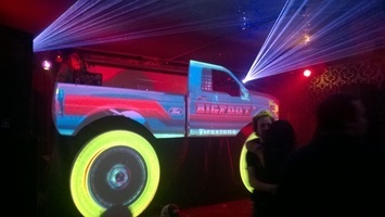 That giant truck cut-out had random stuff projected on it: the desert at night, grumpy cat, video games, videos of monster trucks. I’m not much of a dancer, so this provided entertainment while I broke out the same two moves all night.