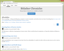First, the root page, www.bitlather.com, now shows the blog instead of books. I think seeing a list of blog articles is a better first impression. If a visitor came for the books, it’s easy to get there. Also, we advertise the most recent book at the top of the blog page.