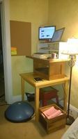 I frankensteined myself standing desk from things I already owned: a shoe rack, a backgammon table, and a coffee table that I’ve been using diligently for all of my most important projects ever since I was about six years old.