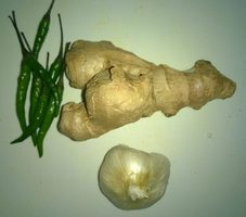 While soaking, you can prepare the garlic, ginger, and peppers.