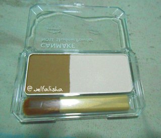 Jadi, Canmake Nose Shadow Powder ini kemasannya terbuat dari plastiki bening. Lalu, di dalamnya ada dua warna. Yang cokelat itu untuk...