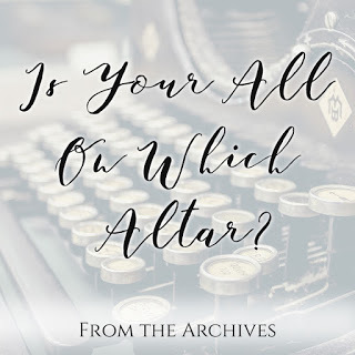 "Is Your All On the Altar?" is one of my favorite hymns. It is a constant reminder to do a heart-check: What am I holding back? Yet the other day, God brought a new question to light: "Upon which altar are you laying your all?"