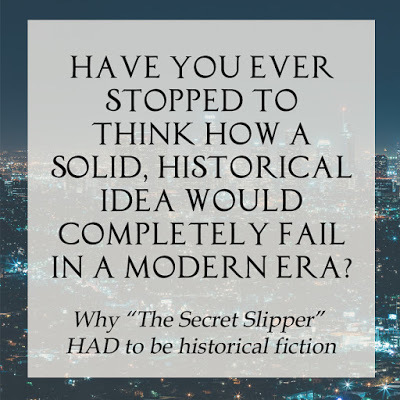 First, the historical post about WHY "The Secret Slipper" HAD to be historical. Have you ever considered why a certain idea HAS to be in a certain era? It's really fascinating to think about!! I'd love to hear your spin-offs of why _______ story had to be told in ________ era.
