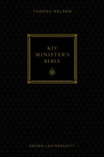 Though I am not a minister, I was interested to see what all this publication of the Bible contained, as I heard it had extra resources. It is a soft leather and very comfortable to hold. There are three bookmarks, which is a major plus for me, as I usually read in more than one place at a time. The text is small print (not tiny, but definitely not large print) and portions of Scripture are separated by titles and captions.In the center of the Bible is a tab for easy flipping to the minister’...