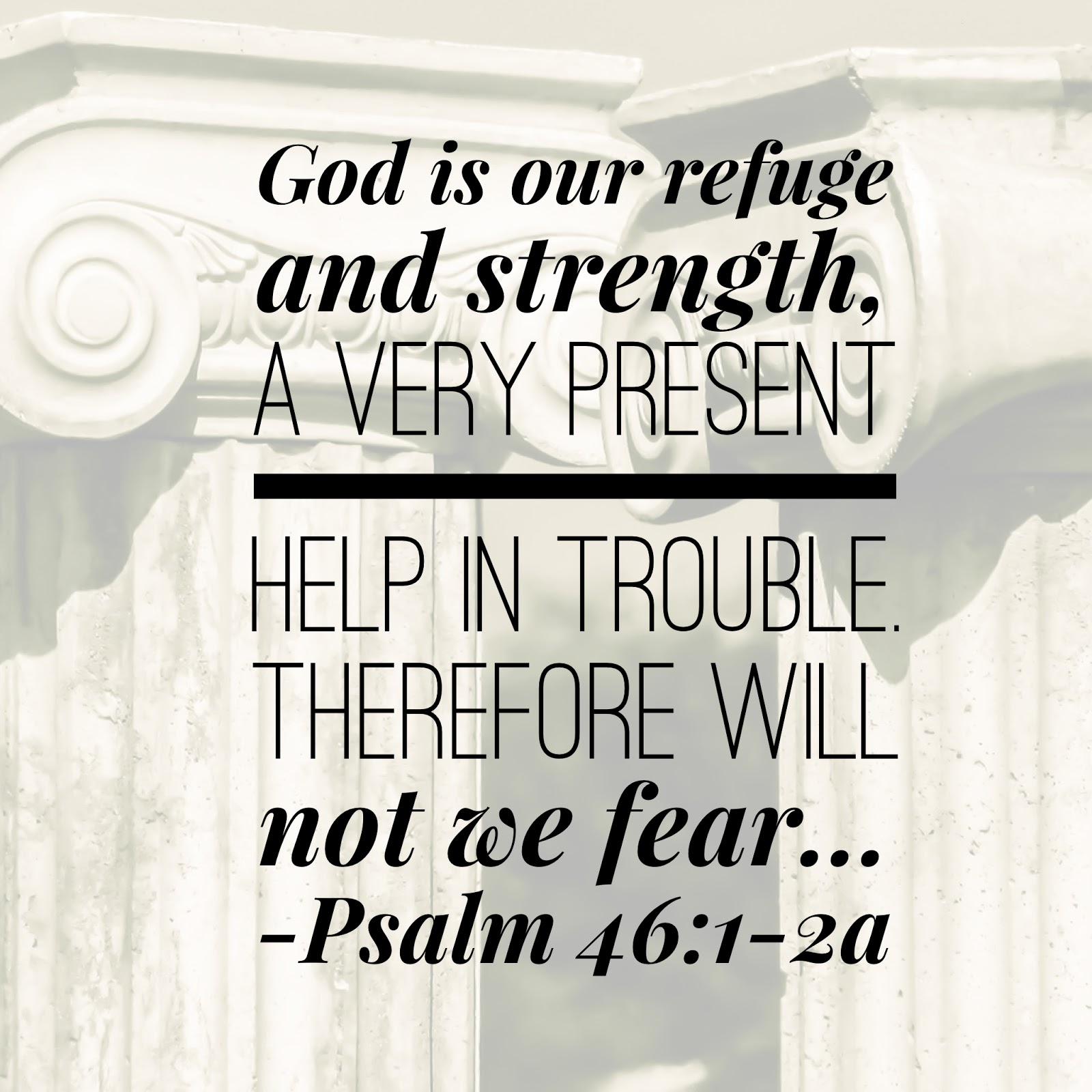 God is our refuge and strength, a very present help in trouble. Therefore will not we fear, though the earth be removed,...