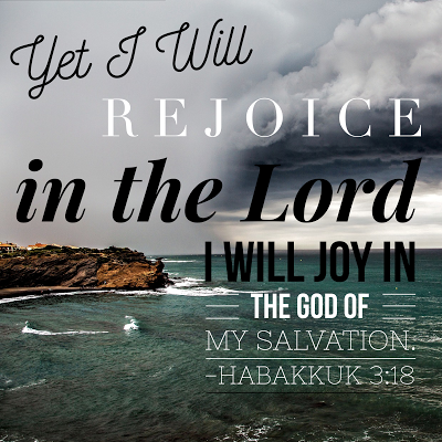 "Although the fig tree shall not blossom, neither shall fruit be in the vines; the labour of the olive shall fail, and the fields shall yield no meat; the flock shall be cut off from the fold, and there shall be no herd in the stalls: Yet I will rejoice in the LORD, I will joy in the God of my salvation." Habakkuk 3:17-18Basically, though all livelihood was destroyed, he rejoiced in the Lord and His salvation. How often do menial things keep us from rejoicing in God? Things that, in a month,...