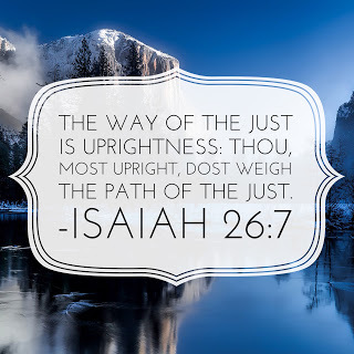 "The way of the just is uprightness: thou, most upright, dost weigh the path of the just. Yea, in the way of thy judgments, O LORD, have we waited for thee; the desire of our soul is to thy name, and to the remembrance of thee. With my soul have I desired thee in the night; yea, with my spirit within me will I seek thee early: for when thy judgments are in the earth, the inhabitants of the world will learn righteousness." Isaiah 26:7-9So much in these verses!