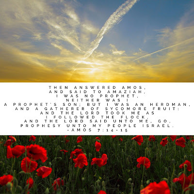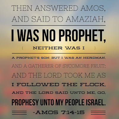 I love this testimony of Amos. The Lord took him from where he was faithfully doing what he was supposed to do, and called him to prophesy. I think today, so many people want to "do big things" for God that they neglect to stay faithful to do what He currently has them to do.