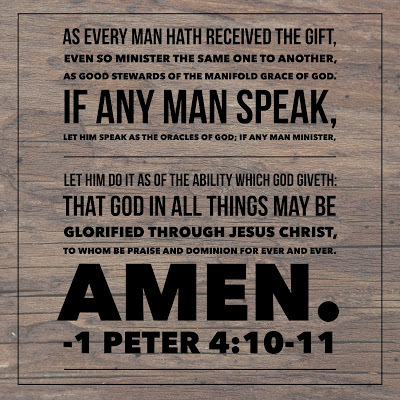 Some of my favorite verses. Work however God has gifted us, our focus o...
