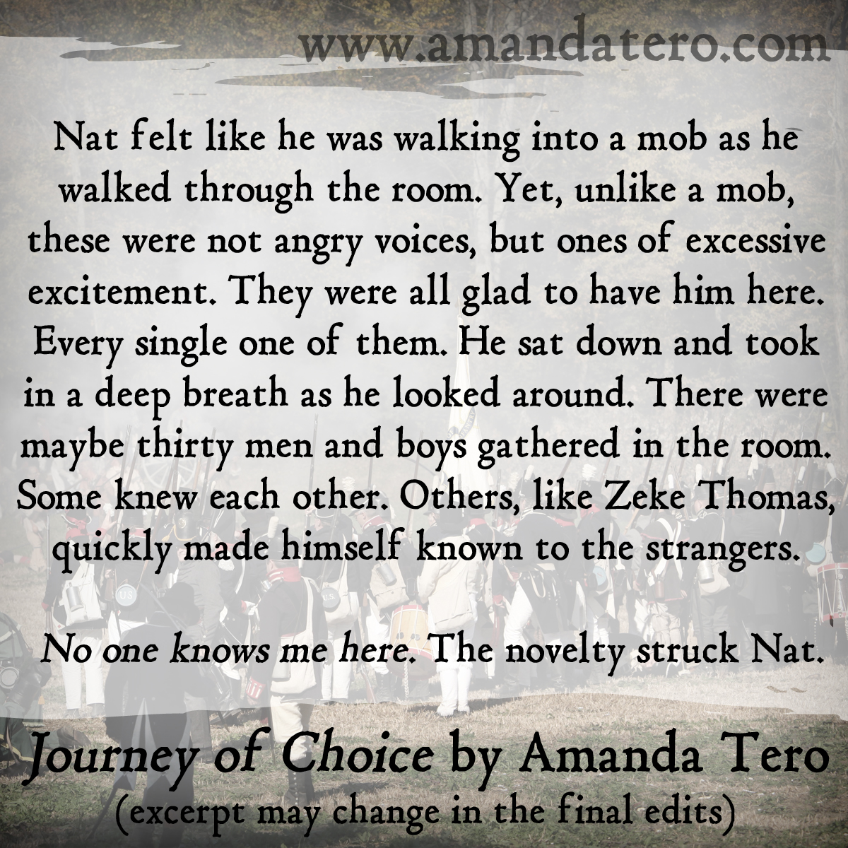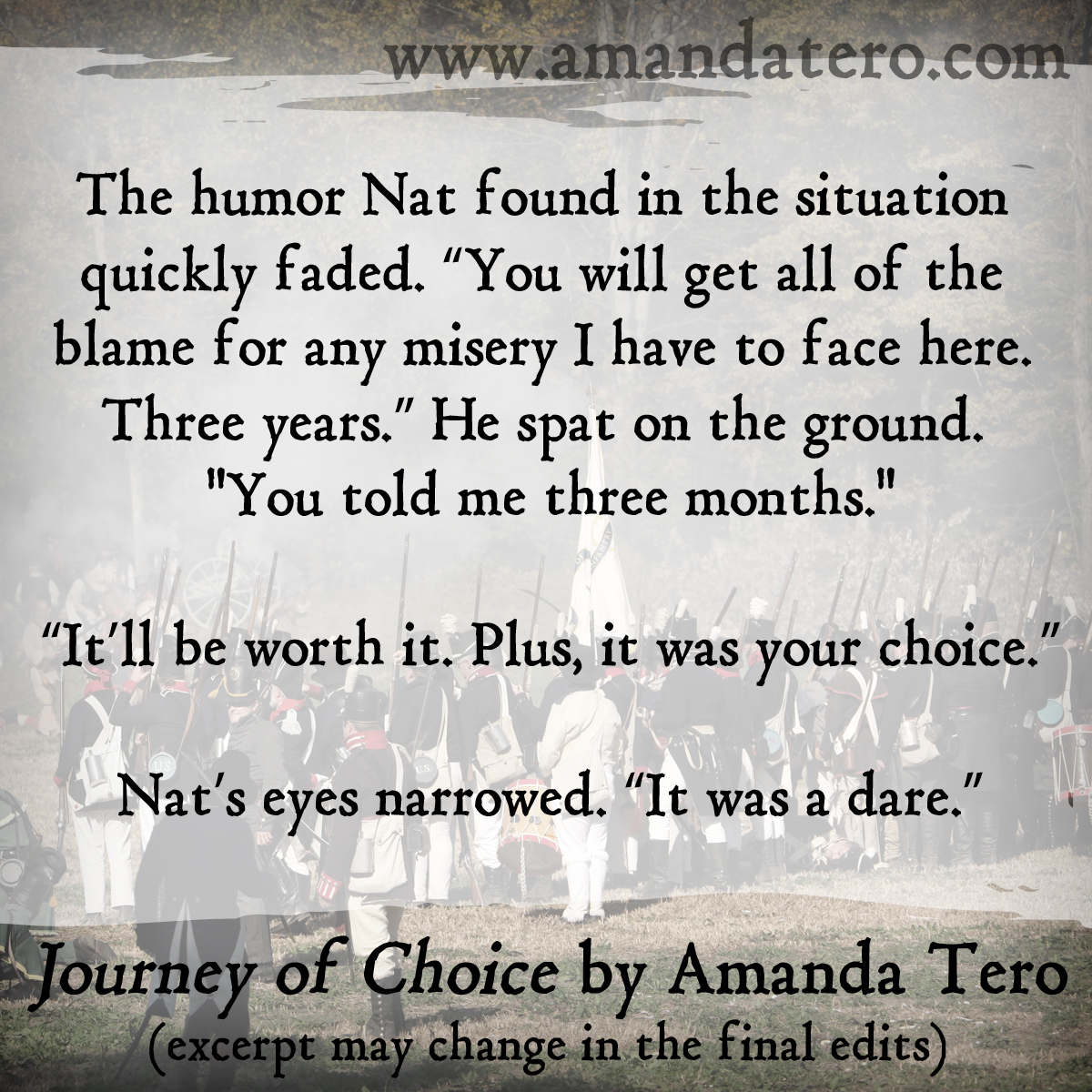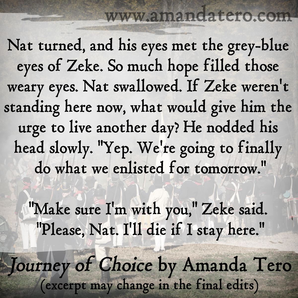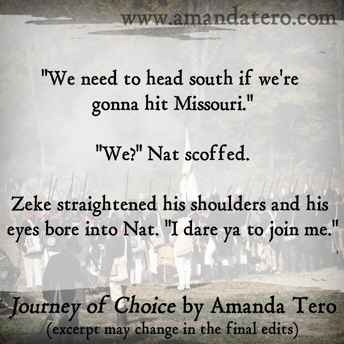 is out there, my focus has turned to my WIP, Journey of Choice. I have shared snippets of it off-and-on, here and there... I'm really bad at keeping track what I've shared here on this blog, and what I've shared here or here or
