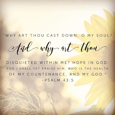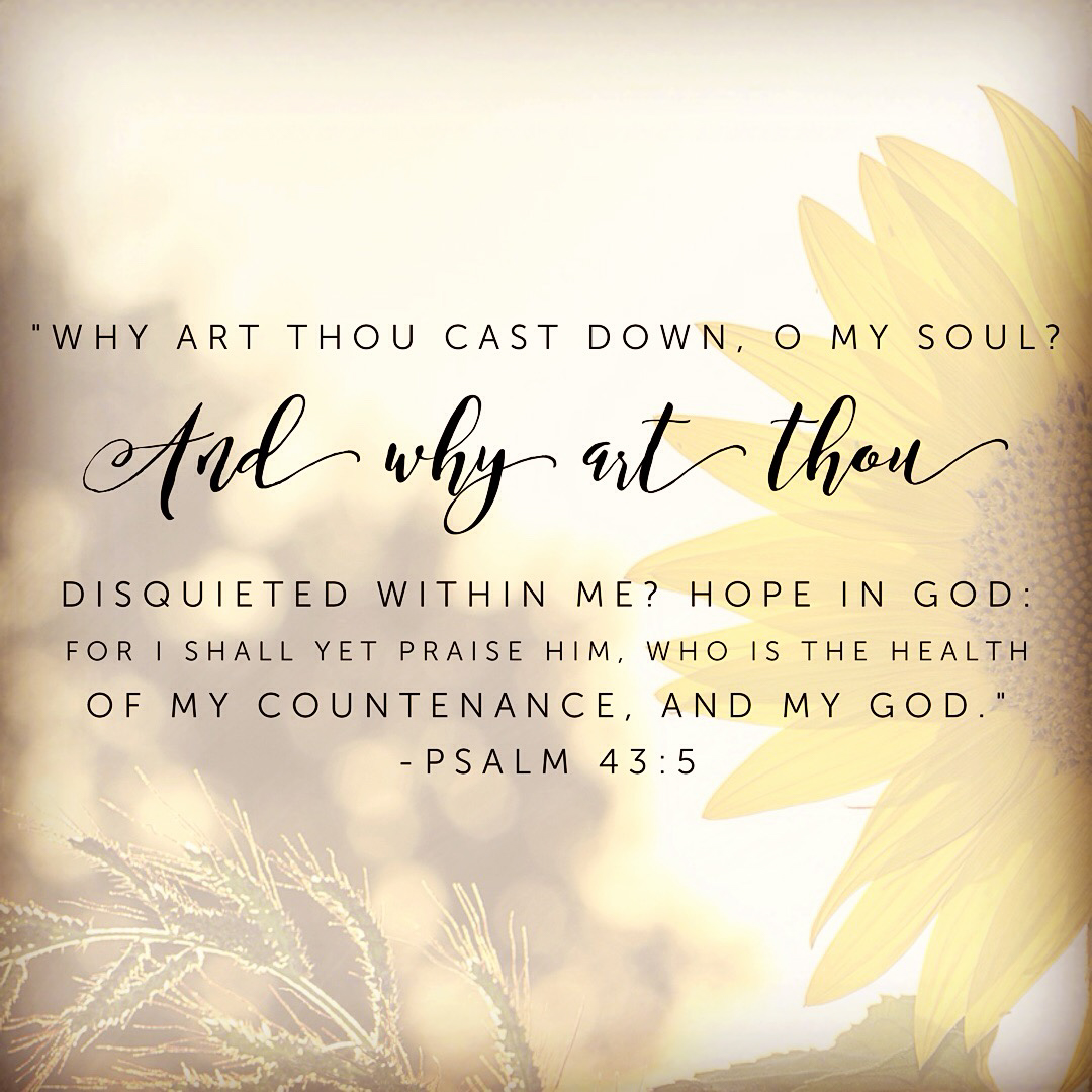 In times of discouragement, where is our focus? On how cast down we are? Or on the God of our hope, our praise, and our health?