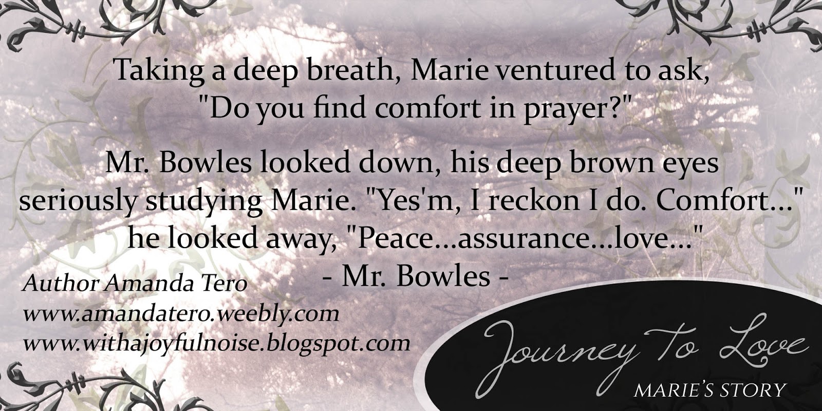 Also, I'm having a blog tour for "Journey to Love" on March 14-26, 2016, and you're invited to join me! Are you interested in joining? If you have a blog or are on Amazon or Goodread...