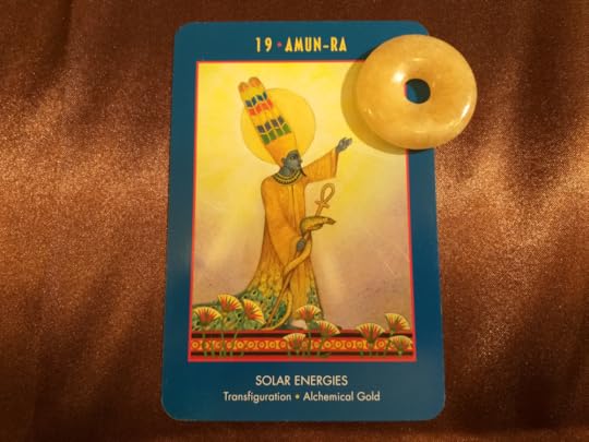 I always pick the crystals before I pull the cards. It is, once again, uncanny how the stones in this reading match the cards, but nowhere more so than here, Orange Calcite representing solar energies coupled with the card of the Egyptian solar deity Amun-Ra. Solar energy is all about action, a positive attitude and this means not only that you shouldn't just hide away and write but shine your light and share your progress, your achievements and also your challenges with the world but also allow your characters to take inspired action.