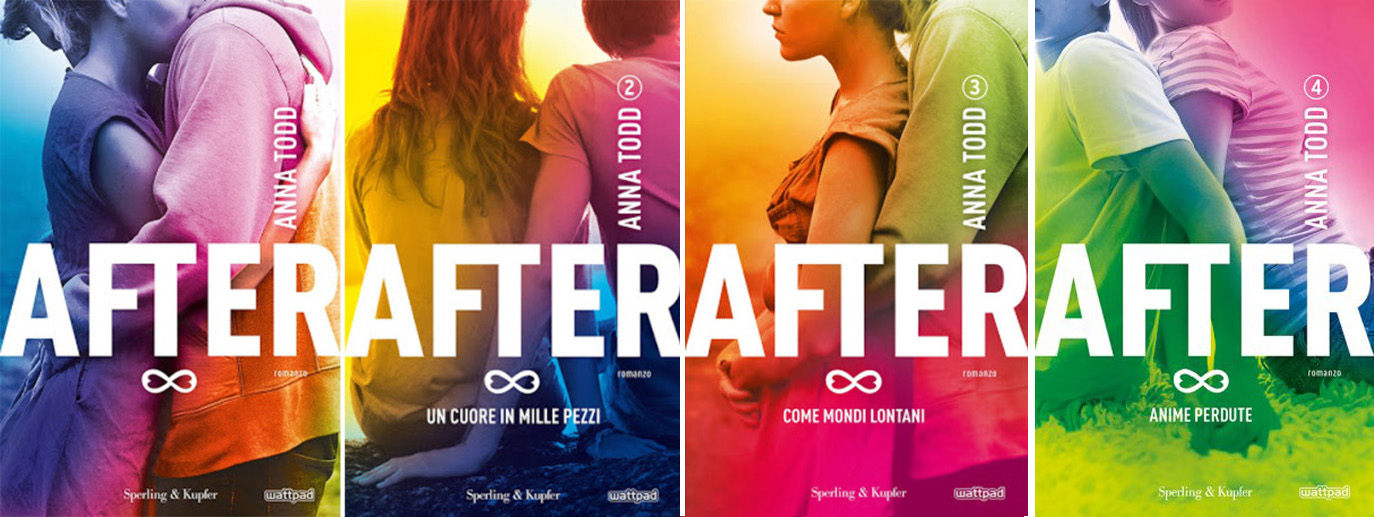 After è un tripudio di alti e bassi narrati attraverso una scrittura assolutamente semplice e contemporanea, rivolta ad un pubblico maturo, sì, ma anche a chi vuole farsi trasportare dai propri sentimenti. Badate bene: sentimenti in continua lotta tra loro!Si resta per lo più attoniti dal fatto che Anna Todd abbia voluto inserire delle scene di sesso, che non ci si aspetta effettivamente, e pensiamo si tratti della solita storia d’amore americana al college. Una caratteristica che rimanda con la mente a 50 Sfumature di grigio e ci fa capire come il coraggioso e discusso tentativo di E.L. James abbia condizionato la nuova narrativa contemporanea. Per quanto riguarda il finale a sorpresa invece, la prima cosa che balza all’occhio è l’esorbitante somiglianza con il film Non è un’altra stupida commedia americana, anche se in chiave comica, anch’essa incentrata sulla vita studentesca dei personaggi e sulla tendenza ad allontanare chi è diverso e fuori moda, dove il risvolto della medaglia coincide inevitabilmente con l’avvicinamento di un personaggio maschile e uno femminile. Quindi, in ultima, After è un capolavoro? No, ma assolutamente coinvolgente.Bellissima la cover creata dalla graphic designer Sabrina Veneto che combina immagini prese da Getty Images e unisce il simbolo dell’infinito (iconografia che viene più volte ripresa nel romanzo) creato dal gruppo Planeta-Art Department for the design. La copertina mostra Tessa e Hardin abbracciati in uno sfondo variegato di colori, che ben si lega con le colorite e svariate avventure e disavventure che i due vivono a distanza di pochi mesi. Probabilmente una delle poche copertine del quale ci si può fidare!